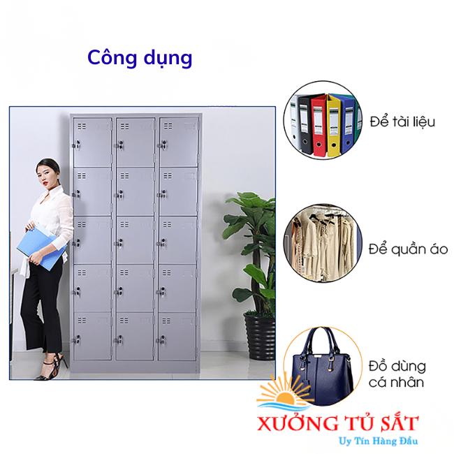 | Tủ locker 18-30 ngăn | Nhiều ngăn nhỏ, tối ưu lưu trữ | Phòng gym, siêu thị, ký túc xá |