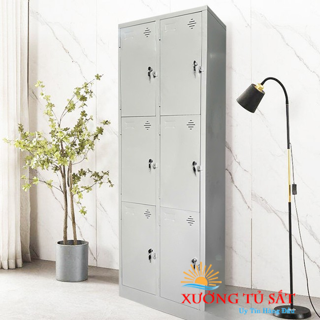 Tủ sắt locker 6 ngăn 2 cột là dòng tủ được thiết kế chuyên dụng cho nhu cầu bảo quản đồ cá nhân tại văn phòng, nhà máy, trường học, phòng gym, siêu thị hoặc khu vực công cộng. Với thiết kế gồm 2 cột song song và nhiều ngăn nhỏ riêng biệt, sản phẩm mang đến sự tiện dụng và tính thẩm mỹ cao.